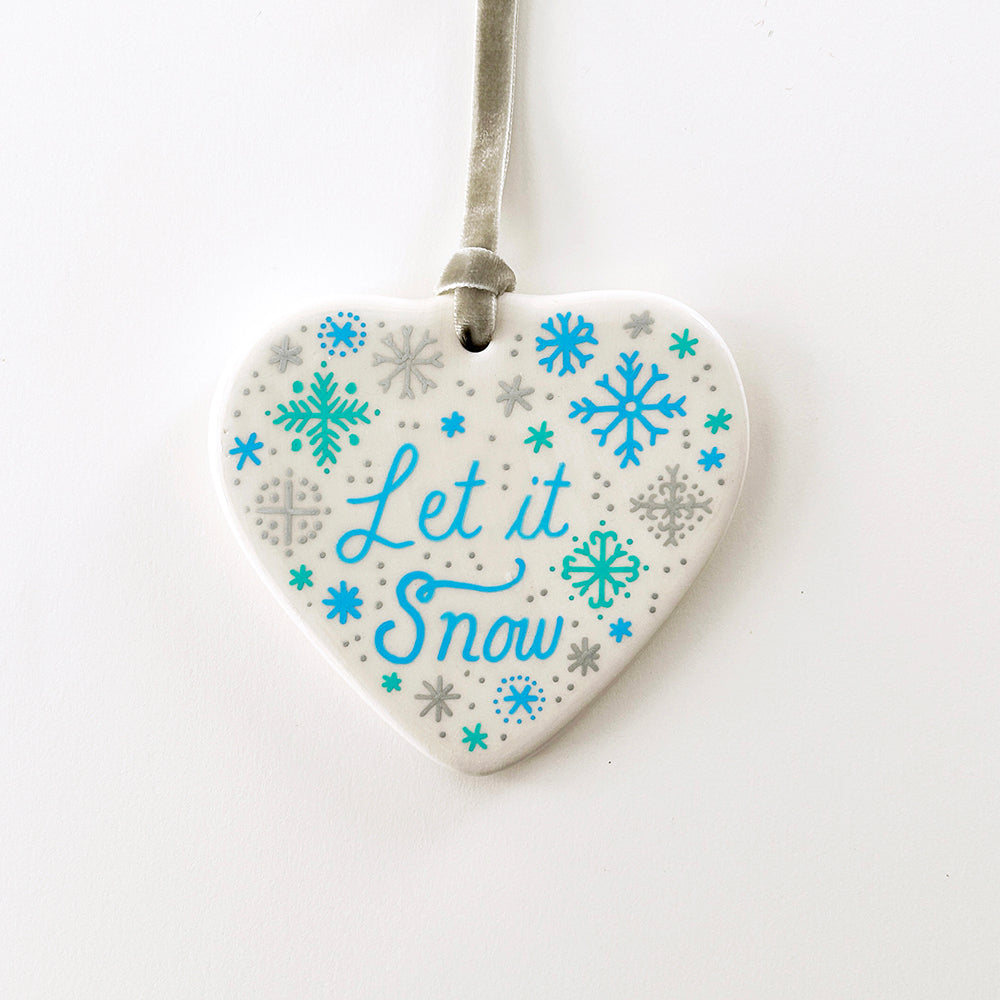 Heart Ornament - Let It Snow - Silver Velvet Ribbon
