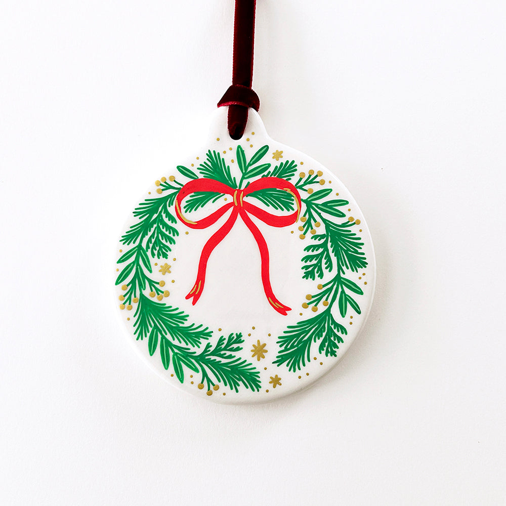 Circle Ornament - Red Bow Wreath - Red Velvet Ribbon