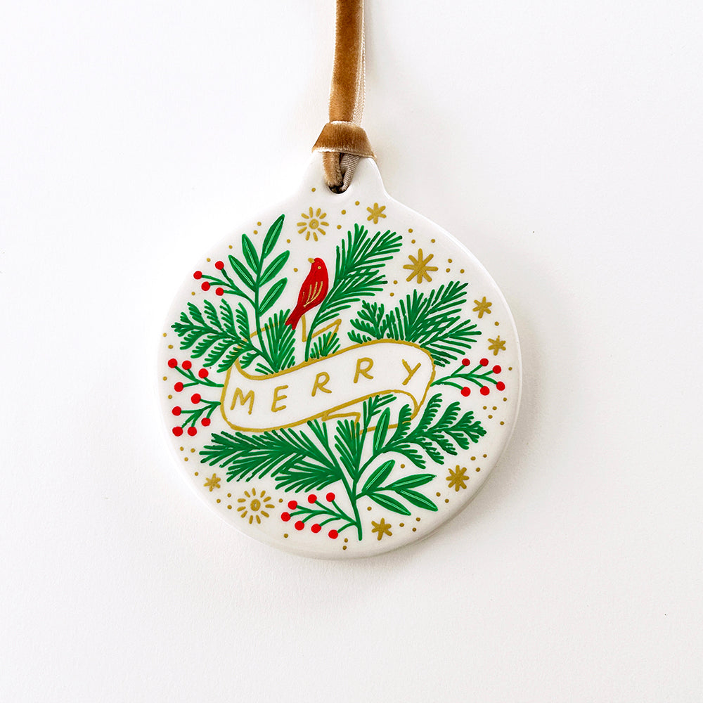 Circle Ornament - Merry Banner - Gold Velvet Ribbon