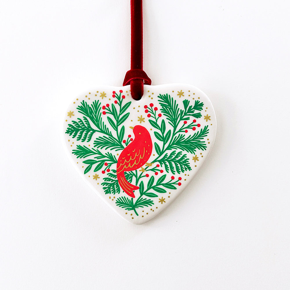 Heart Ornament - Red Bird - Red Velvet Ribbon
