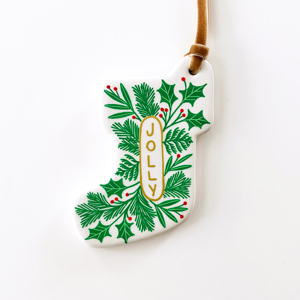 Stocking Ornament - Jolly Emblem - Gold Velvet Ribbon